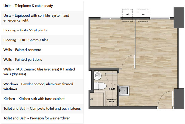 Ground floor consists of retails units and residential parking; 2nd floor to 4th floors are the parking areas, 5th floor is where the Amenities and a few residential units are zoned. And lastly, from 6th to 39th floor has the residential units.