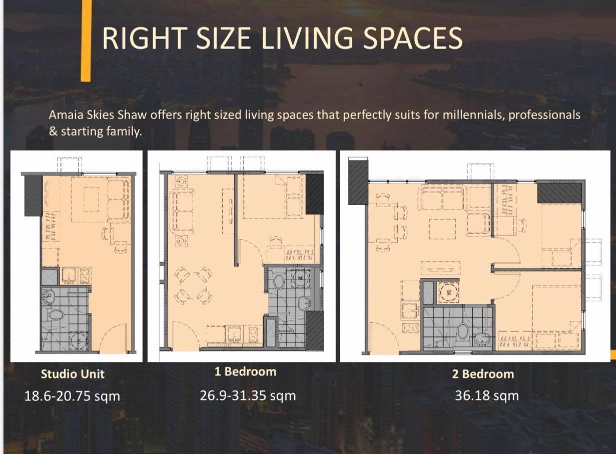 Whether your goal is end use or investment, having a unit in Amaia Skies Shaw is a no-brainer! If you are a starting family, the 1 bedroom space is just enough for you and your spouseto live in. When the family grows, and it’s time to move to a bigger space, you have the option to rent the unit and become your source of cash flow. Leasing out a unit in this area is preferred by working professionals in the nearby CBDs and you can offer the unit at a competitive rental rate.