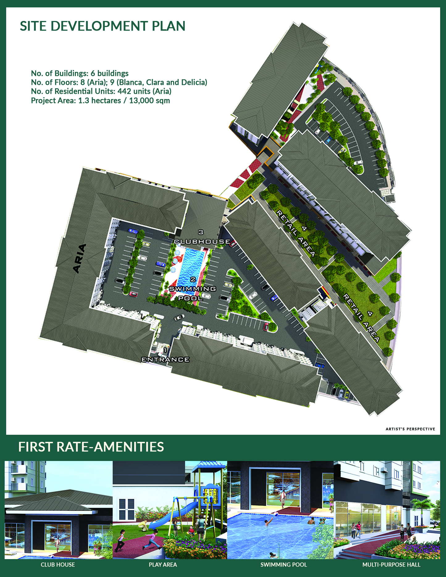 Composed of 6 towers, namely: Aria, Blanca, Clara, Delicia, Esperanza, and Fidela - featuring mid rise buildings (8 storeys).