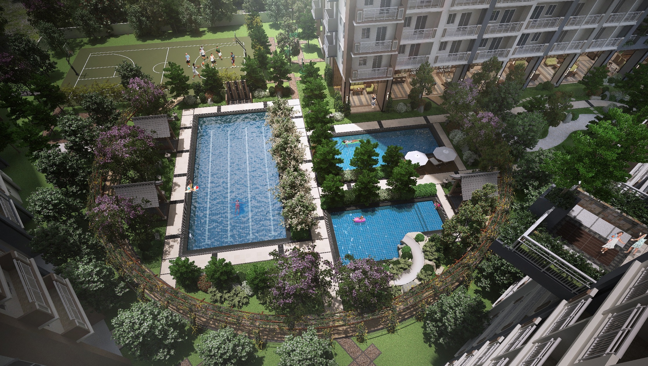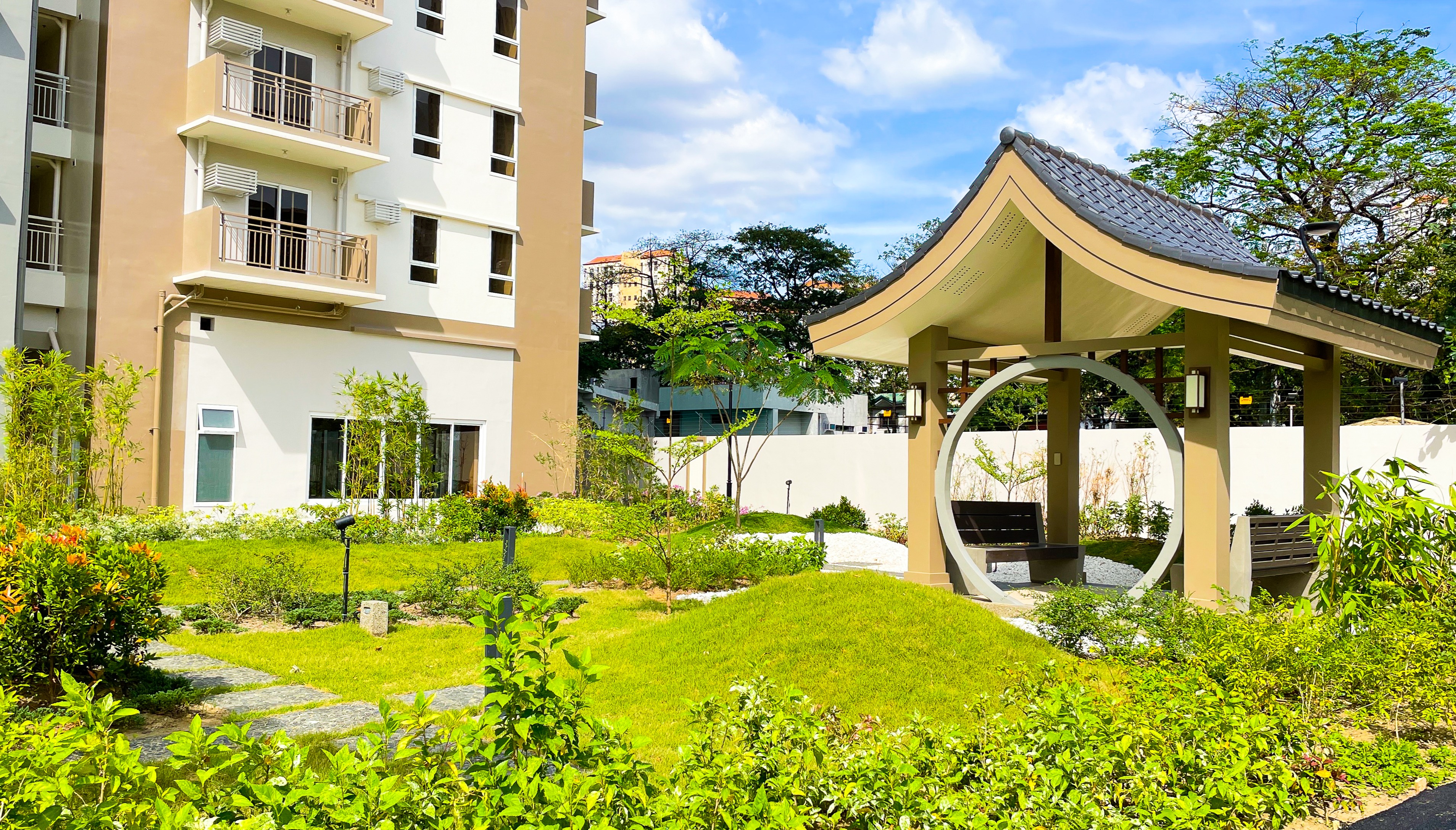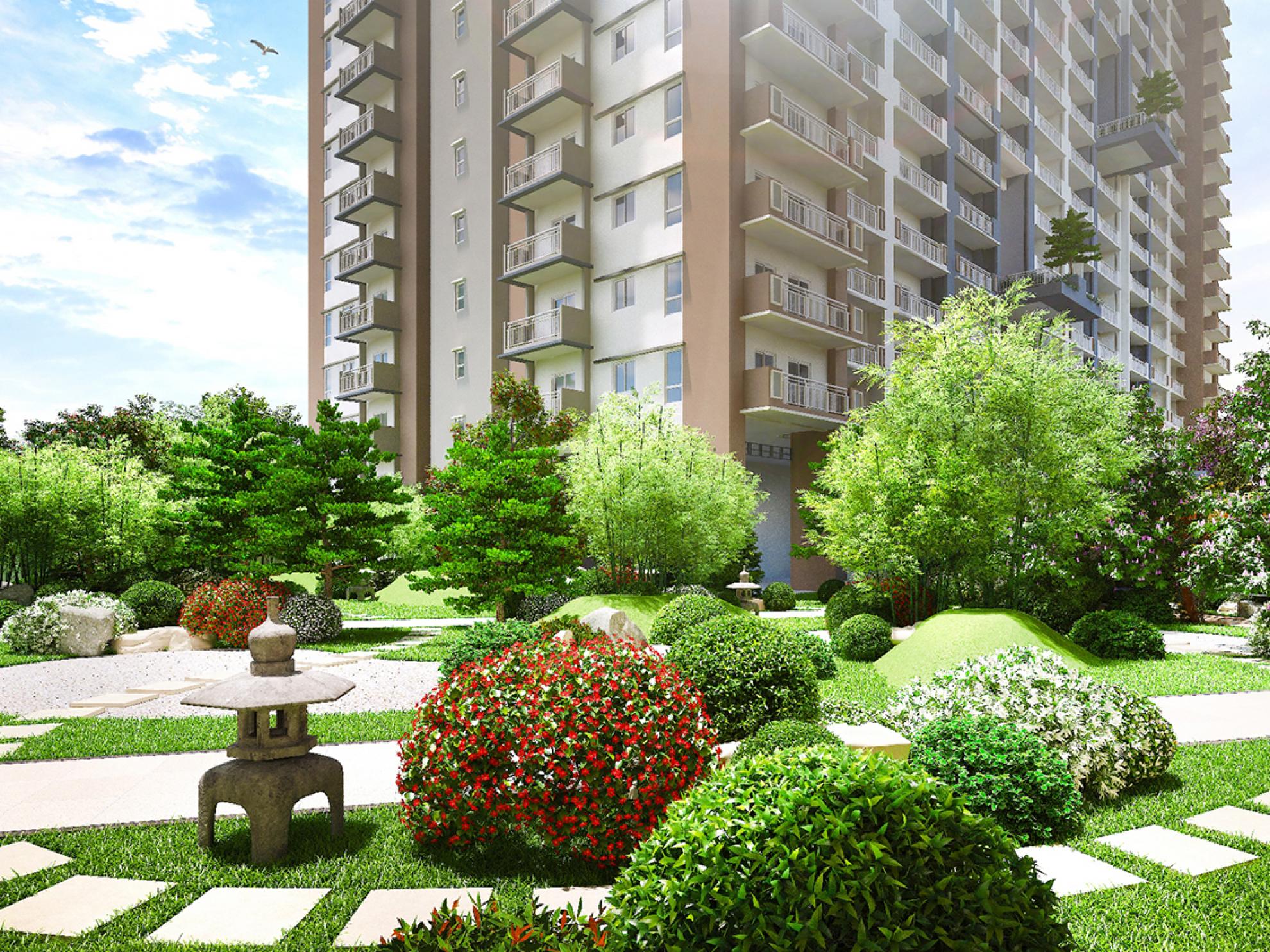 The property features Japanese-inspired architectural theme across its three residential buildings, complete with spacious open gardens to match the vibe. Lush greeneries along every walkway leading up to the Sugi, Icho, and Hinoki residential buildings in keeping with the Asian motif.